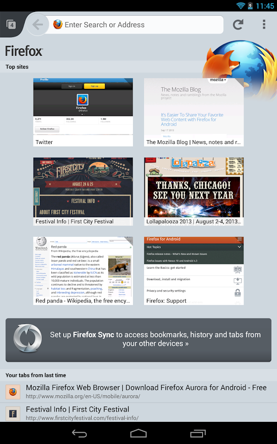 ★ Awesome Screen: Firefox’s Android browser keeps everything organized so you don’t have to. The Awesome Screen automatically sorts your favorite sites onto one, easy-to-read page